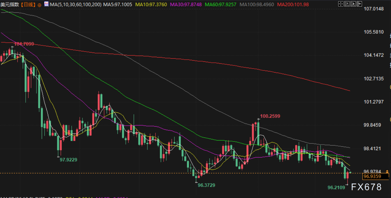 欧元兑美元下跌0.3%,报1.18305美元,盘初一度升至1.19185美元,为2021年6月以来最强。 衡量美元兑其他六种货币的美元指数 报 96.926,上涨 0.3%。