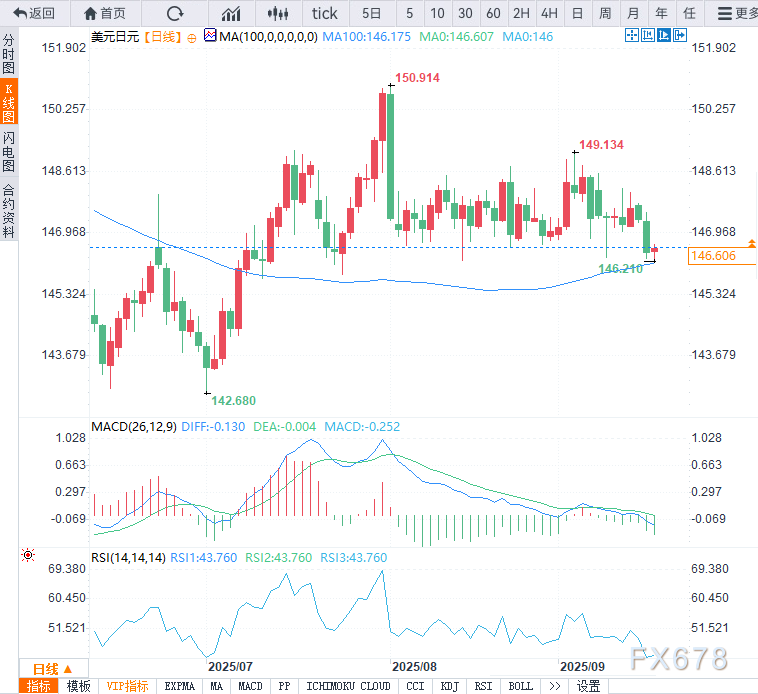 美元兑日元坚守100日移动均线(146.18)上方,该支撑位成多头关键防线