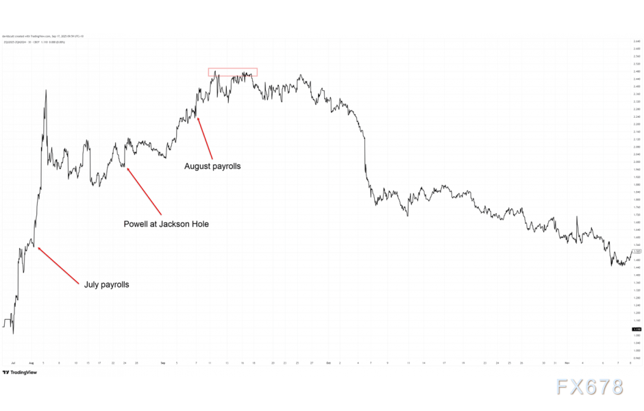 美元近两个月跌势在未来或难持久,此番情景与去年非农数据引发的虚假信号如出一辙。美元在周三(9月17日)美联储议息会议后显著下跌,而很快于鲍威尔新闻发布会后反弹,鉴于整体数据仍显经济韧性,且对美联储独立性担忧目前看来言过其实,市场可能再度修正降息预期,从而为美元注入新的上涨动力。