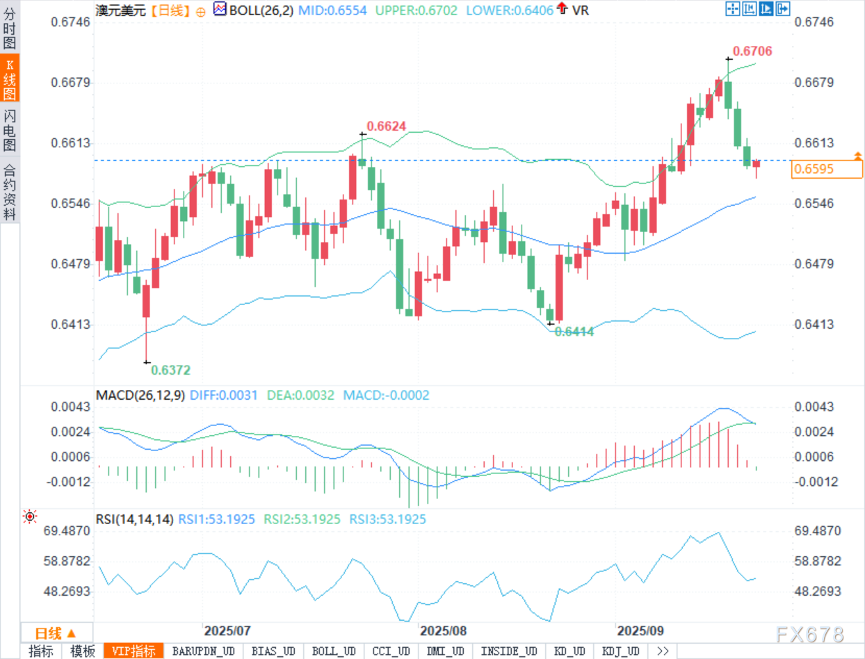 澳洲端,本周三的月度CPI预期为2.8%。若读数显示通胀韧性仍在,意味着澳洲联储(RBA)在未来数月可能更谨慎地讨论降息,从而为澳元提供利差上的相对支撑;反之,若通胀意外回落,则市场会提前反映更宽松的RBA路径,对汇价构成波动率扩张的另一端。综上,短期内AUD/USD的驱动呈“美端指引+澳端数据验证”的双因素结构:前者决定方向基调,后者决定幅度与节奏。