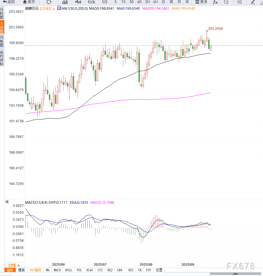 GBP/JPY目前处于短期反弹阶段,但日元政策不确定性与英镑相对疲弱制约了进一步上涨。若价格能有效站稳200关口并伴随成交量放大,则可能延续上行趋势;反之,若无法突破阻力,短线可能再次回落至支撑位附近。