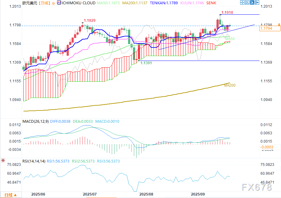 随后汇率反弹至1.1800这一心理关口,且目前仍处于50日指数移动平均线(EMA)和一目均衡云指标(IchimokuCloud)上方。