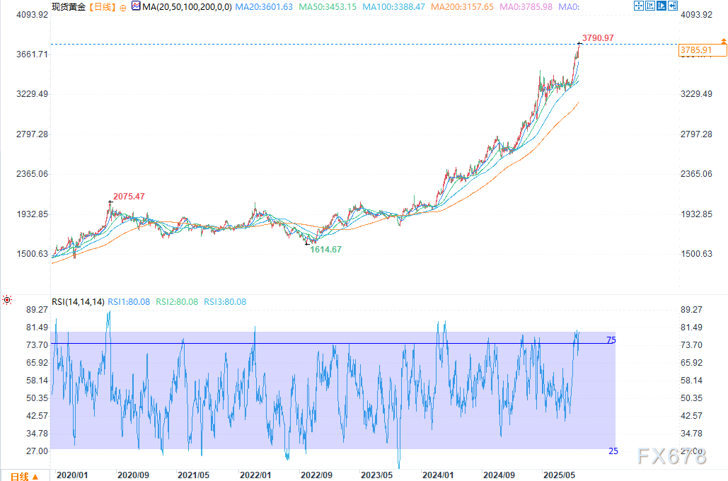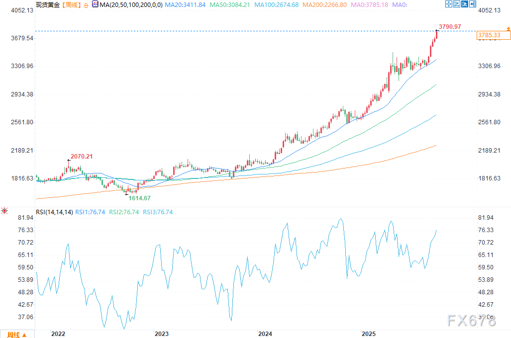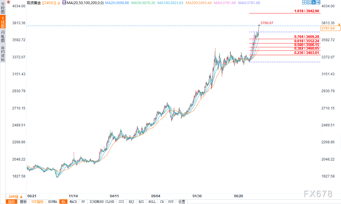 当前,地缘政治紧张局势加剧、避险资产需求上升、股票与加密货币市场风险偏好下降,多重因素共同作用,再次推动黄金价格走高。每盎司黄金现货价格已创出历史高点3790美元;从上周五开盘到周二欧洲市场活跃交易时段,金价累计涨幅超过4%。