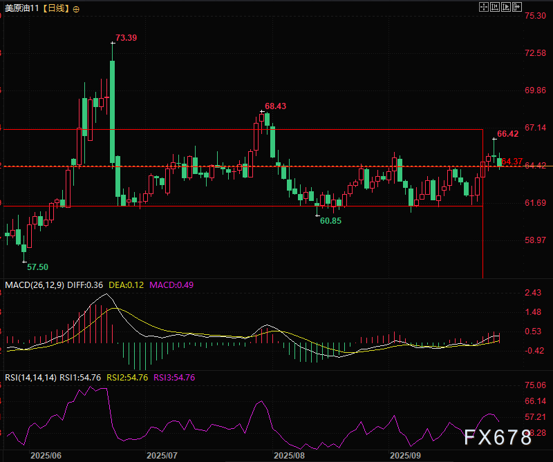 截至发稿时,美原油11月期货合约下跌约40美分,至64.46美元,下跌1.92%,油价均回吐了上周强劲涨势的部分涨幅——上周地缘政治风险升级曾短暂提振市场情绪。