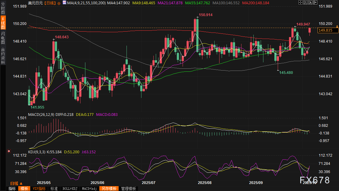 综上所述,高市早苗的胜选如同一枚重磅炸弹,引爆了日元汇率的剧烈波动。通过扩张财政政策的预期,它不仅推迟了日本央行的加息进程,还放大日元的卖压,导致美元/日元直逼150关口。然而,美国政府停摆和美联储降息的潜在影响,也为这一涨势设下障碍。