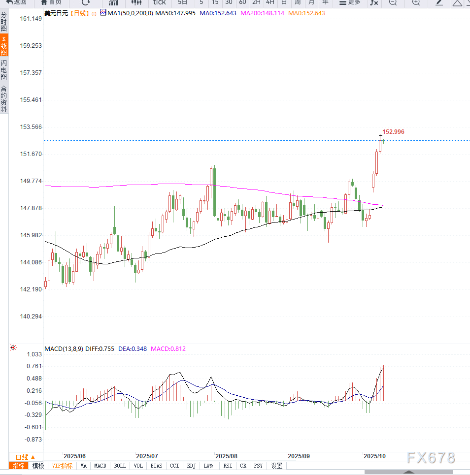 投资者对日本财政政策的不确定性,使日元多头信心受限。此外,以色列与哈马斯就和平计划第一阶段达成协议,缓解全球地缘政治紧张情绪,也抑制了避险日元的升值空间。