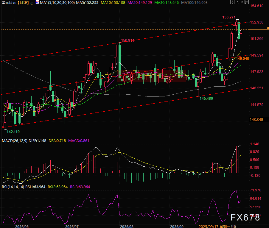 与此同时,日本方面的消息意外推升美元需求。日本执政党自民党(LDP)选举64岁议员高市早苗为党首,这意味着她有望成为日本首位女性首相。该消息对日元构成沉重打压,美元兑日元货币对本周开盘跳空上行约300点,进而带动美元全面走强。市场预期高市早苗将承诺扩大联邦支出并推行更为宽松的货币政策,日元因此大幅下挫。