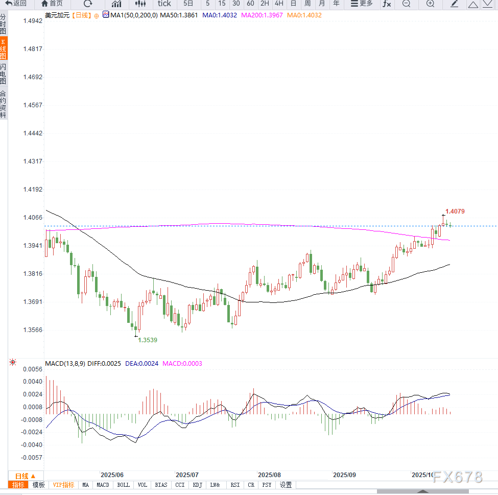 美联储降息预期强化叠加油价上涨,令加元在基本面上占据明显优势。短线来看,美元兑加元若失守1.4000关口,将可能引发进一步抛压,目标或指向1.3920一线。中期走势仍取决于美联储政策节奏及全球原油供需的变化。