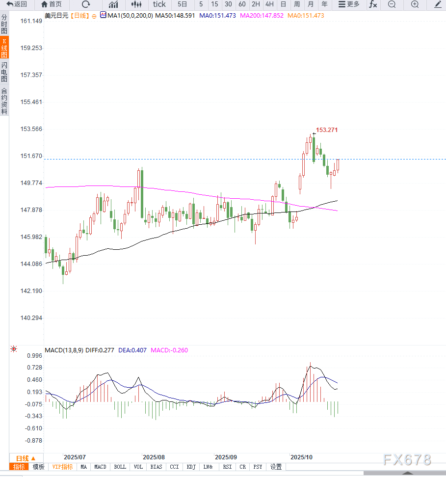 美元/日元在亚洲盘持续上行,日元承压,现交投于约 151.40 附近。日本新任首相高市早苗上任后,市场预计未来日本可能采取更多财政刺激政策,这加剧了日元短期贬值压力。