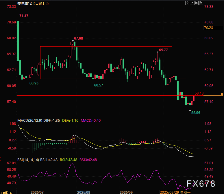 北京时间21:45,美原油12月期货合约现报58.68/69。
