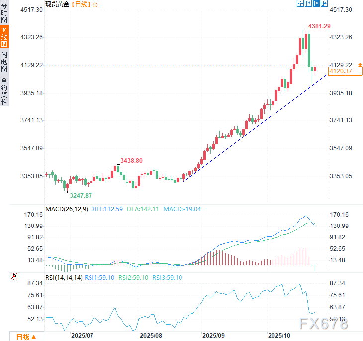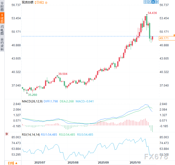 他注意到,在周三延续了数年罕见的暴跌后,金银均出现反弹。汉森表示:“这场剧烈回调表明,经过连续九周飙升(黄金涨31%、白银涨45%)后,市场单边看多情绪已导致价格需要技术性修复。如前所述,除美元走强外,主要催化剂是印度排灯节后需求转弱。与此同时,白银从47.80美元支撑位反弹,黄金则在4000美元上方获得买盘支撑。”