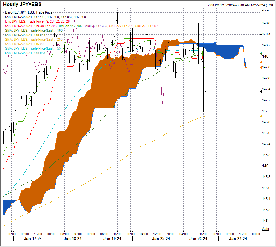 周二(1月23日)欧市早盘,金融市场波动加剧。美元/日元短线急挫,目前接近147关口,半小时内跌幅超过100点。日本央行行长植田和男强调,将根据通胀情况决定是否采取负利率措施,并在退出负利率政策后进一步加息。