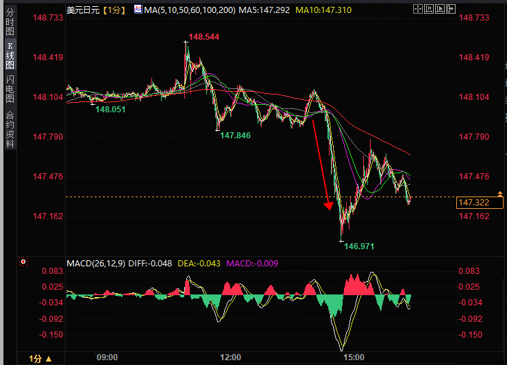 受此影响,日本国债期货走势亦受到关注。10年期国债合约下跌30点,至146.67点。美元/日元大跌导致美元指数承压,目前跌至103.00关口,日内跌幅达35点。
