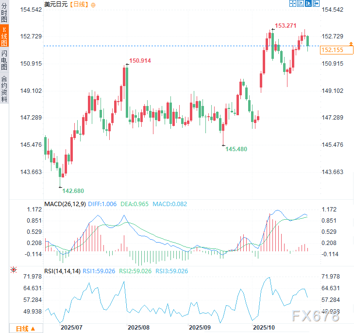 周二美元兑日元一度显著下行,跌幅约0.46%,市场反应显著,推动美元兑日元从前一交易日触及的逾两周高点(153.25)大幅回落。