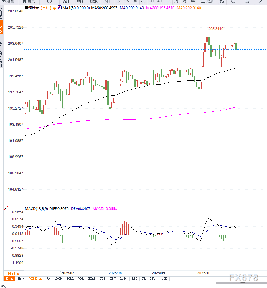 上行方面,若价格重返203.80以上,则有望重新测试204.25一线阻力,但整体趋势仍偏向震荡下行。