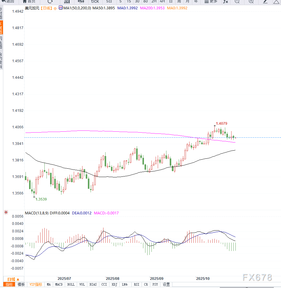 若价格持续承压于1.4000心理关口下方,下一目标或指向1.3950与1.3900支撑区域;若跌破1.3900,则可能进一步测试1.3850附近。