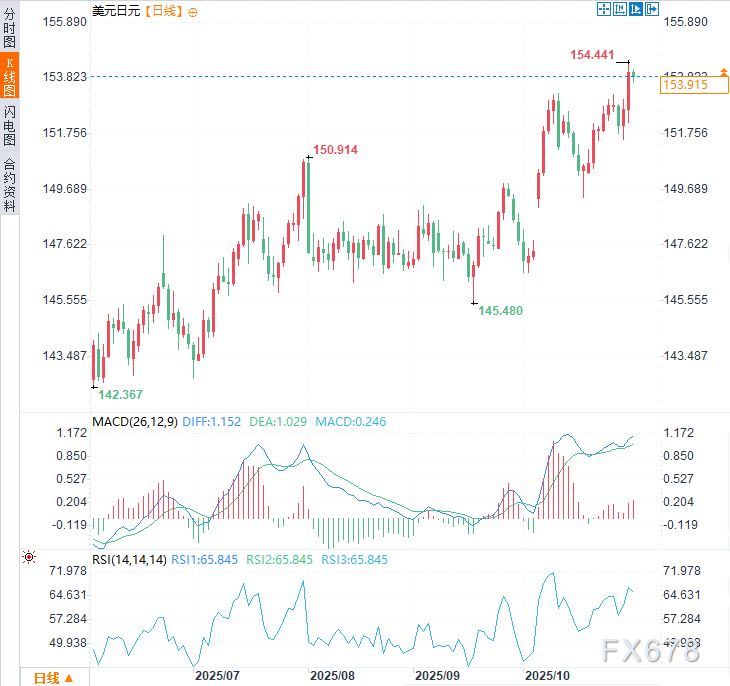 从技术层面看,美元兑日元前一交易日突破153.25-153.30区间(前月度高點)并随后站稳154.00关口上方,成为美元/日元多头行情的关键催化剂。