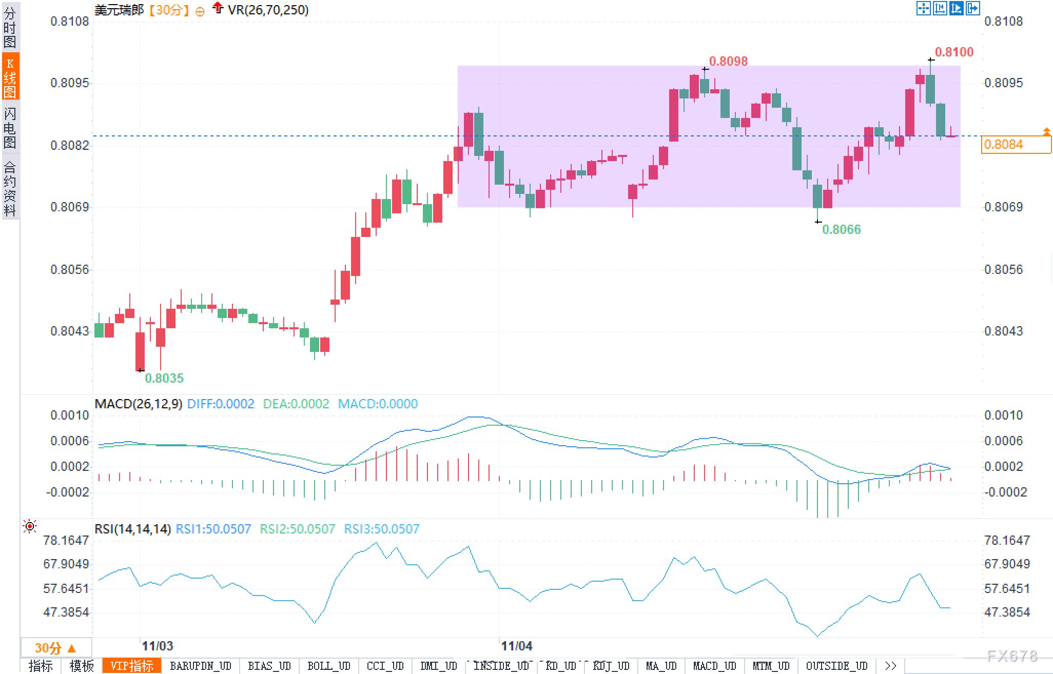 周二(11月4日)北美时段,美元兑瑞郎在0.8080附近交投,盘中一度触及0.8100的心理关口,并在0.8070—0.8100区间内反复。结合最新的政策表态与盘面特征,汇价处于“基本面支撑的强势震荡”阶段。