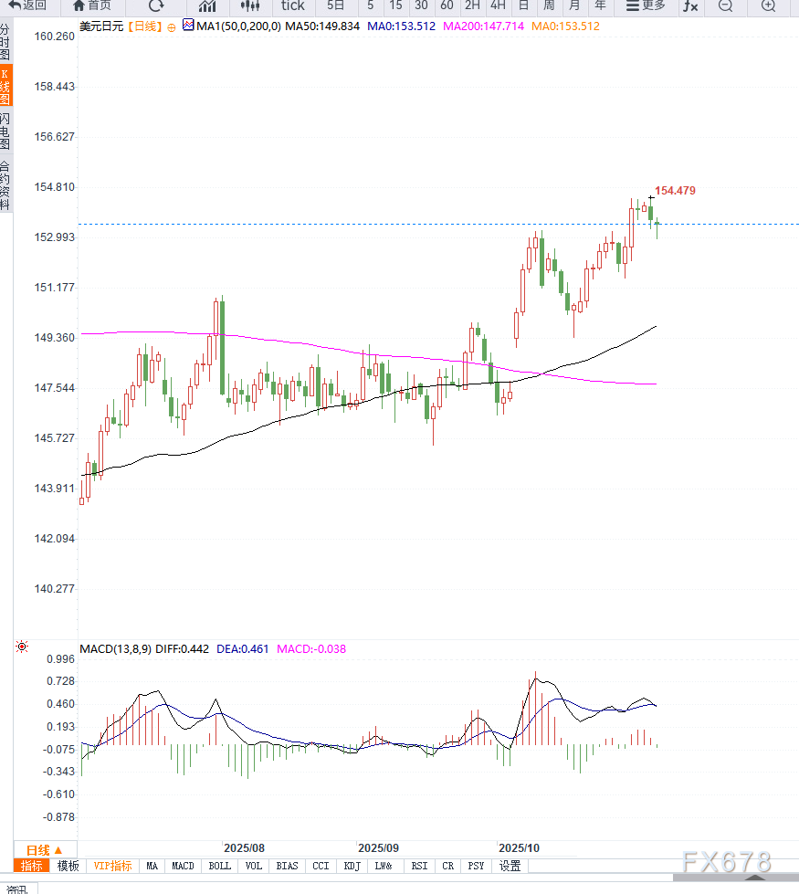USD/JPY近期走势呈现“日元避险支撑强势、美元受财政僵局拖累”的格局。全球风险资产回落及日本政策发声强化日元,下行压力明显;美元虽短线回落,但美联储政策谨慎态度提供一定底部支撑。