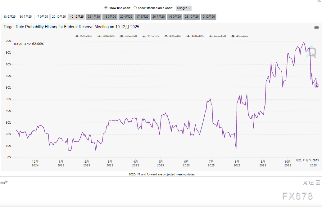 美联储自9月以来已两次下调基准利率,市场普遍预期12月将再度批准25个基点的降息操作虽然近期收到鲍威尔讲话影响大幅下降,但任然有62%,政策制定者希望通过前瞻性举措提前应对可能出现的经济风险。