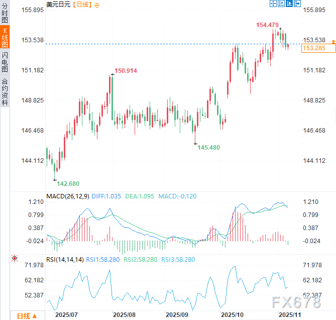美元兑日元在154.45附近屡次受阻,走势已显疲态