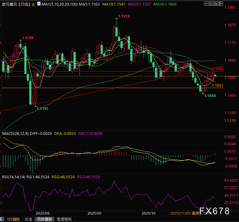技术面来看,1.1600关口的得失将成为多空争夺核心,若能站稳该位置,后续有望向1.1700区间发起冲击;若回调跌破1.1575支撑位,则可能进一步下探1.1500整数关口。