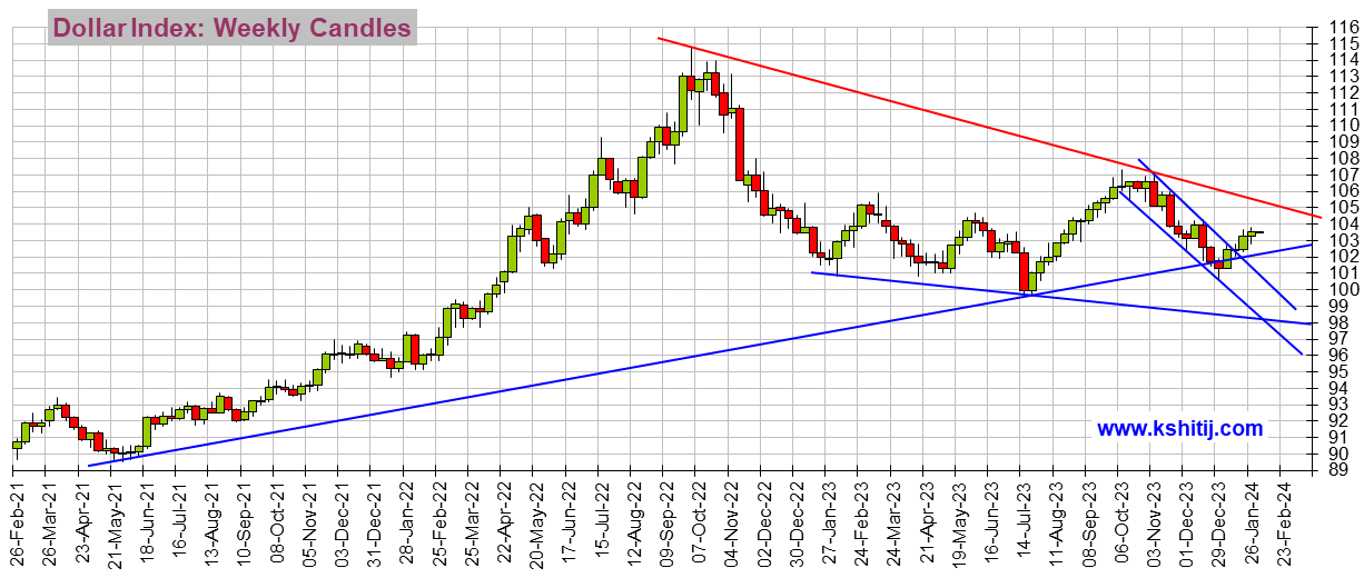 周一(1月29日)亚市盘中,美元指数维持日内温和反弹走势,现报103.50附近。Kshitij咨询服务团队(Kshitij Consultancy Service)周一最新撰文,对美元指数、欧元/美元、欧元/日元、美元/日元、澳元/美元、英镑/美元后市走势进行前瞻分析。