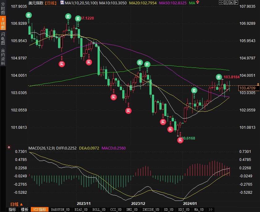 美元指数小幅下挫,现报103.44,跌幅0.05%,但仍保持6周高位。