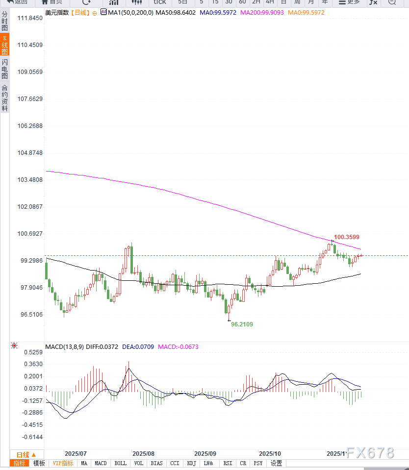 美元指数在周三亚洲市场维持温和上涨,整体围绕99.60水平震荡。在重大事件前,交易员普遍选择减少操作,以等待美联储会议纪要与关键就业数据的重新公布。