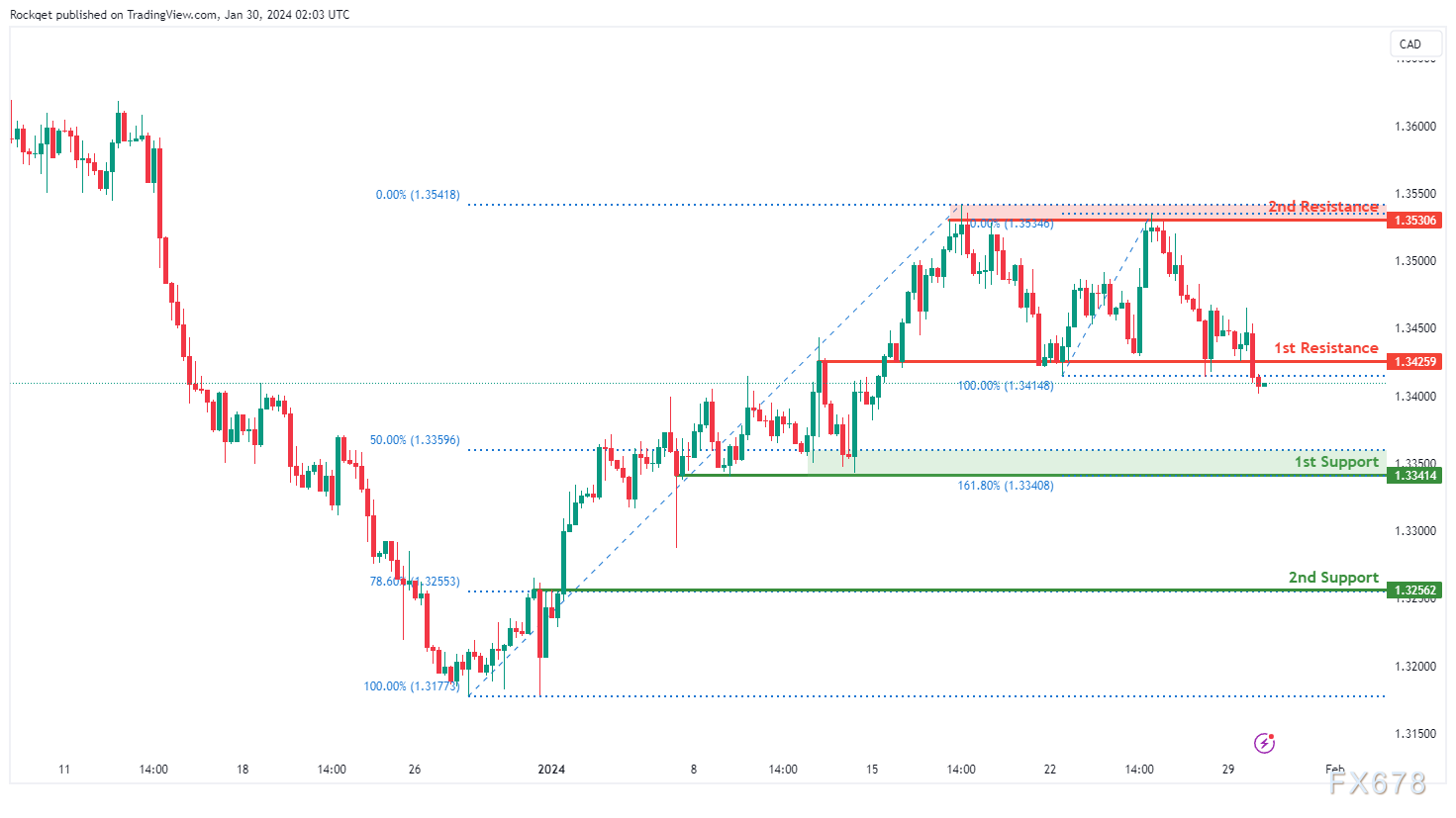 第二个支撑位1.3256为回调支撑位,与78.60%斐波那契回撤位相关,进一步强调了其作为潜在支撑区域的重要性。
