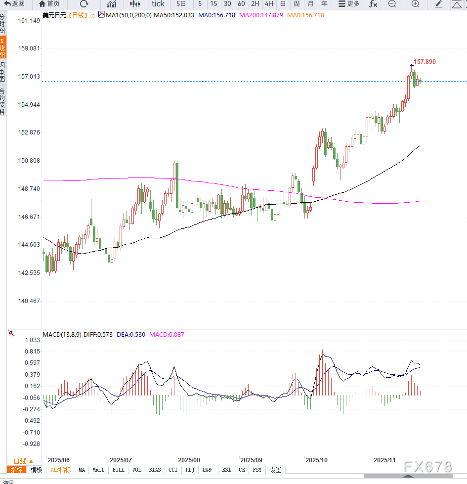 若数据疲弱,美元可能进一步承压,使汇价向156.00下方测试;若数据强劲,则美元或将重新获得动能,推动汇价再度向158.00上方发起尝试。