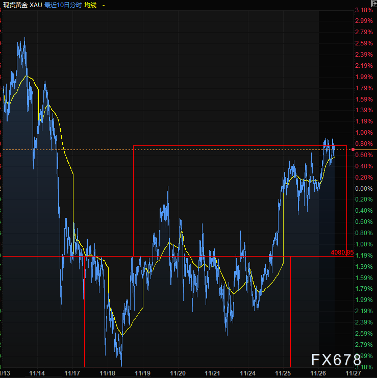 市场预期的和谈落地原地消失,推升了避险属性的黄金。