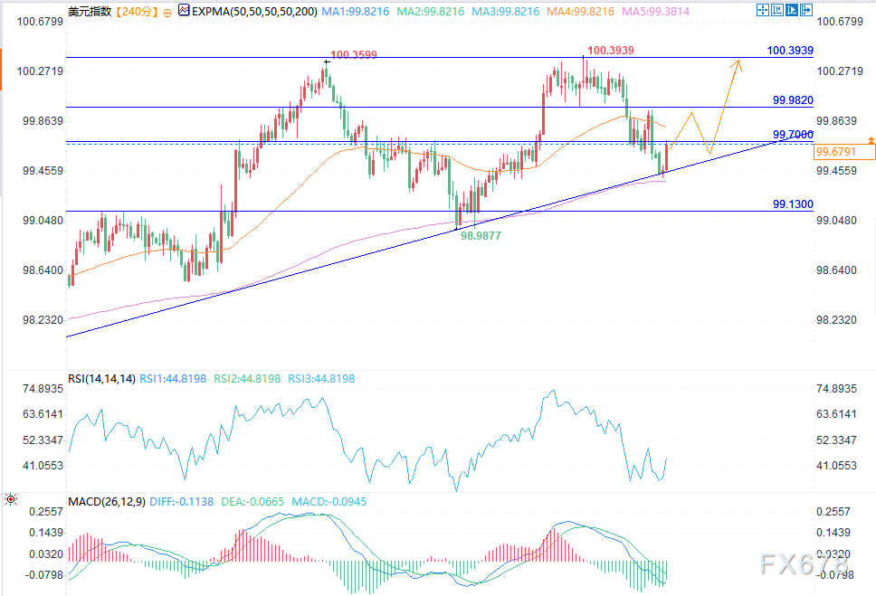 反之,若跌破99.40支撑位,则可能下探99.10,并削弱短期上行结构。目前来看,趋势线仍是决定价格下一步方向的关键观察点。
