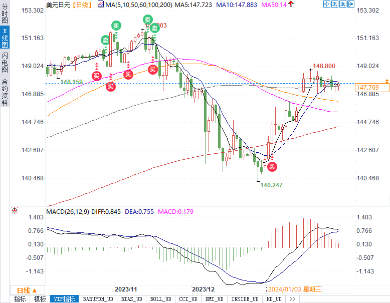 周三(1月31日),美联储会议前美元持坚,美元指数仍停留在横跨102.137-103.965的拥挤云区。英镑/美元在美联储事件风险前跌破1.27,但下一步方向还需关注两大主要央行的态度。看跌欧元/美元者需迫使日线收在关键的1.0822费波纳奇位下方,美元/日元技术面暗示恢复看涨趋势,将测试关键费波纳奇位。