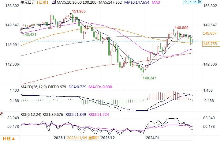 北京时间2月1日15:05 美元兑日元 报 146.755/775