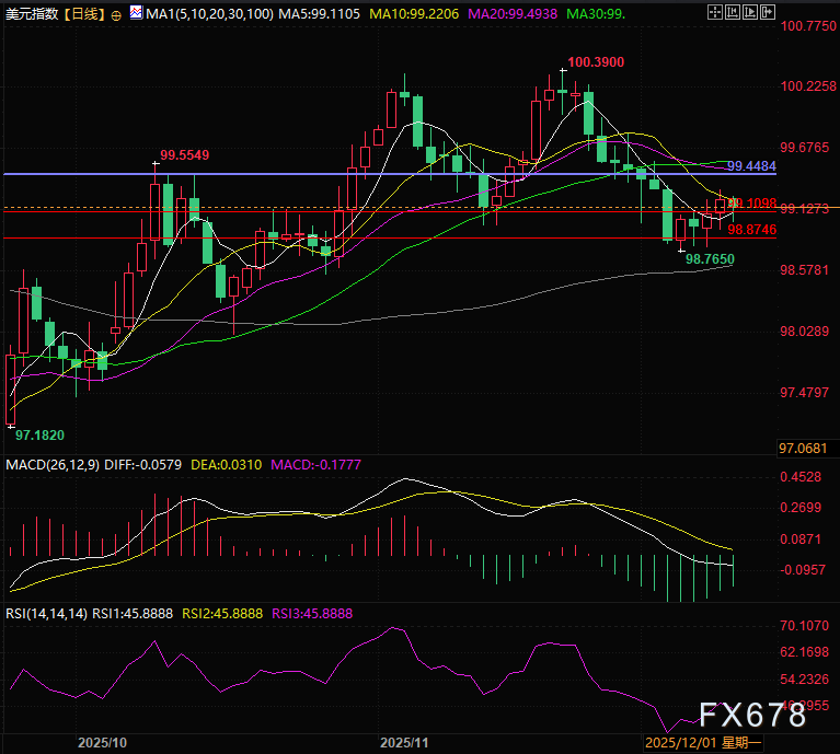 美联储12月议息会议今日落幕,市场对25个基点降息的定价概率已达90%,但美元指数并未因“降息落地”承压,反而坚守99.00关口上方维持微弱反弹。