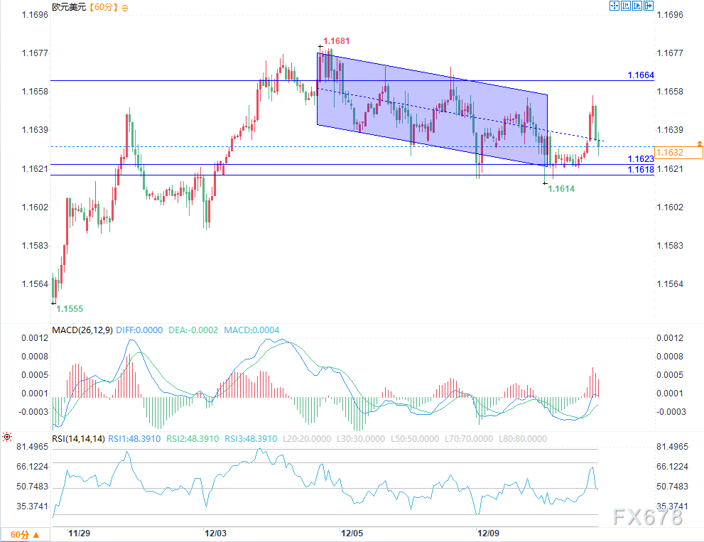 周三(12月10日)欧盘时段,欧元/美元发力拉升、冲高回落,后于1.1635附近震荡。上涨的动力仍然较为有限,投资者在等待美国联邦储备系统当天晚些时候发布的货币政策决定之前,不愿进行大规模的美元走势投机操作。