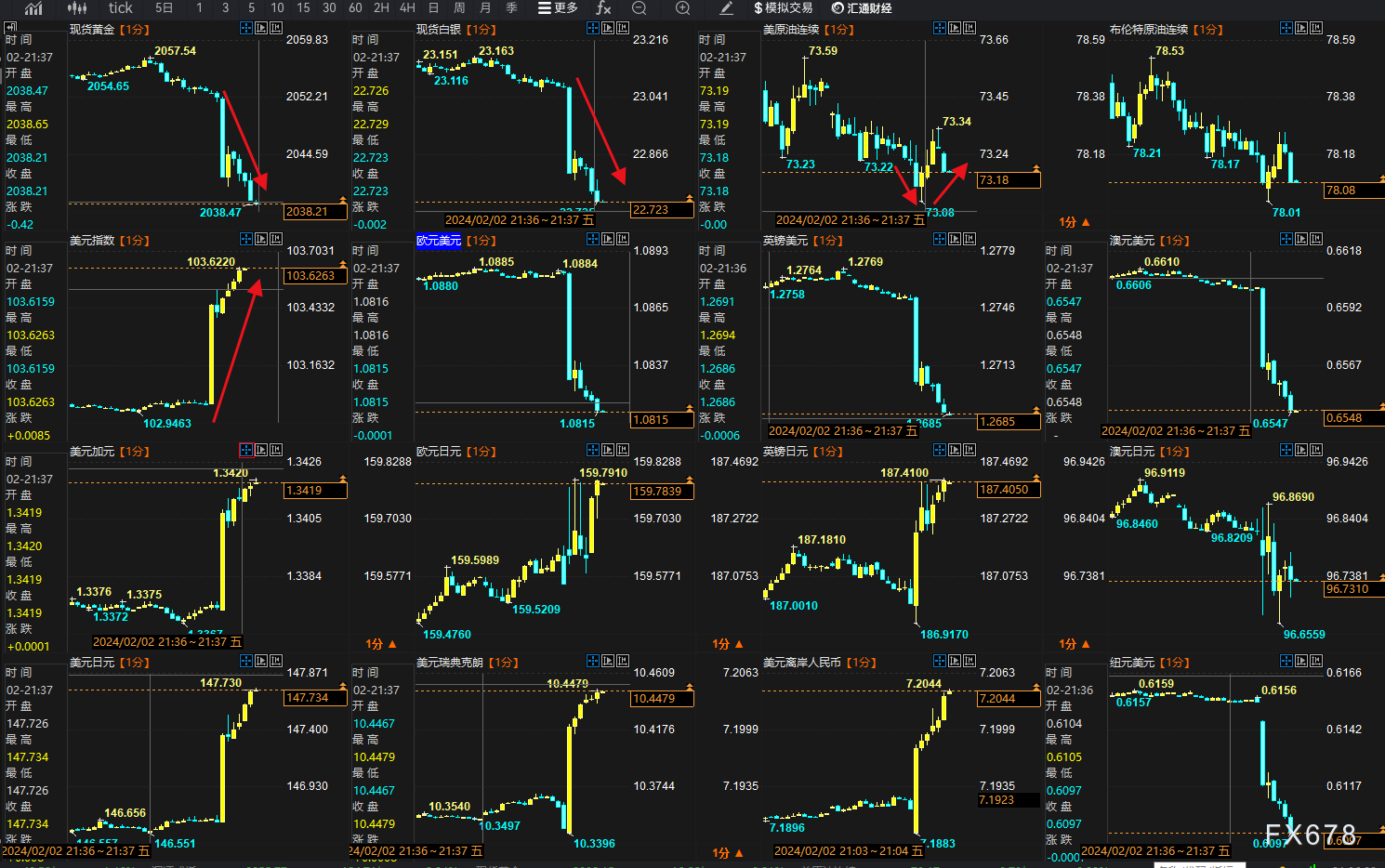 截至发稿,美指涨幅扩大至逾70点,现报103.6991,黄金跌幅扩大至18美元,现报2032.11美元/盎司。