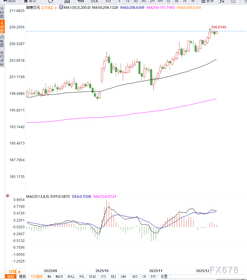 从宏观逻辑来看,英日分化的货币政策预期依然是推动汇价保持高位的核心引擎。然而,随着日本央行加息预期迅速升温,多头在此区域追高的风险在增加。