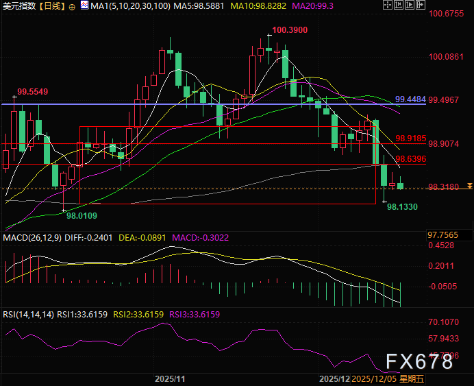 周一(12月15日)亚欧时段,美元几乎没有反弹,保持了强势的下行态势,目前交投于99.36(-0.02%),这一走势完美印证了经典汇率逻辑:利率下行将直接削弱美元计价资产对海外资本的吸引力。