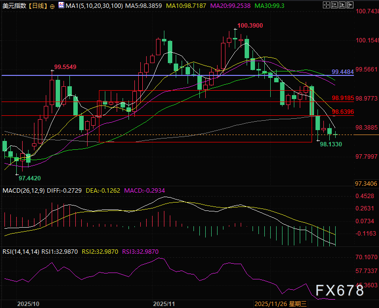 北京时间17:51,美元指数现报98.15。