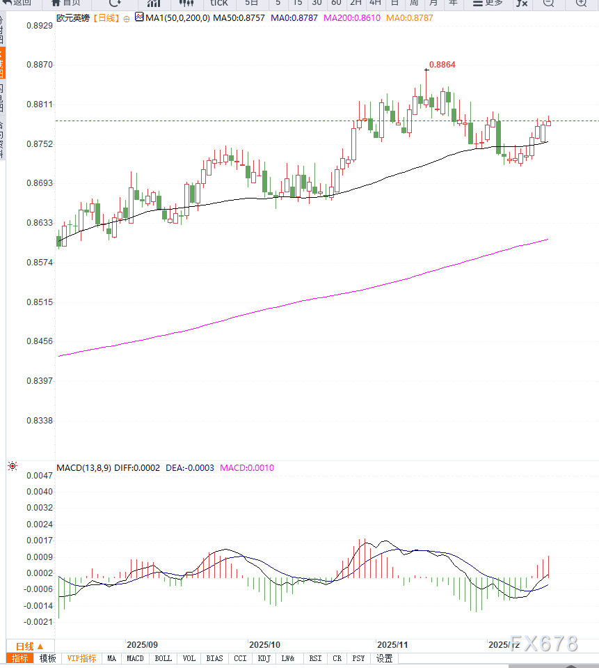 下方支撑方面,0.8750附近构成第一支撑位,该区域对应近期整理平台,一旦企稳,有助于限制短线回调空间。