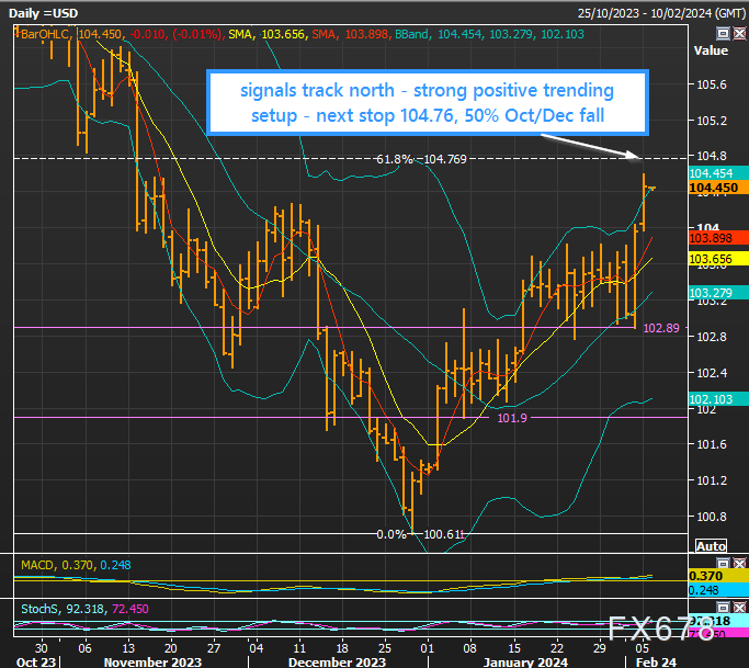 下一个重要阻力位是104.76,为10月/12月跌势的50%回档位。