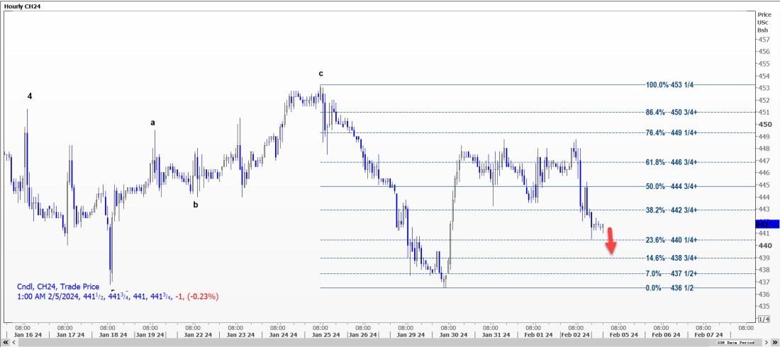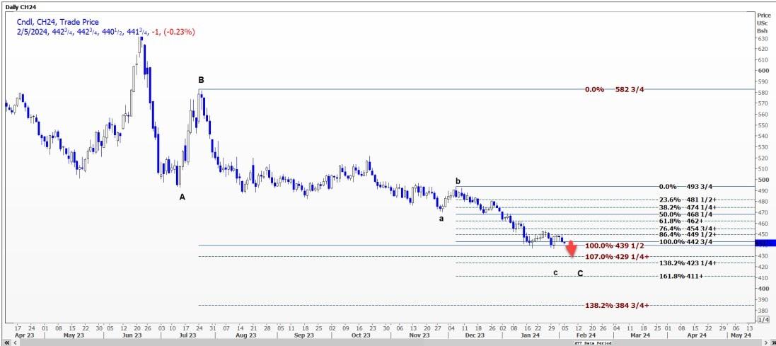 CBOT 3月玉米CH24可能突破每蒲式耳4.4025美元的支撑位,并跌至4.3650-4.3875美元的区间。