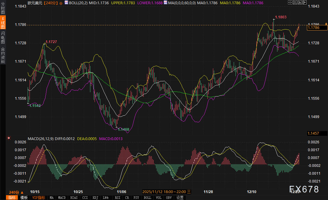 其他市场方面,作为传统避险资产的黄金再创历史新高,触及每盎司4497.55美元,反映出市场在节日清淡交易中仍存有隐性的避险需求。美国国债收益率小幅回落,德国国债价格也有所反弹,这在一定程度上缓解了欧元区外围国家的债券压力,间接为欧元提供支撑。