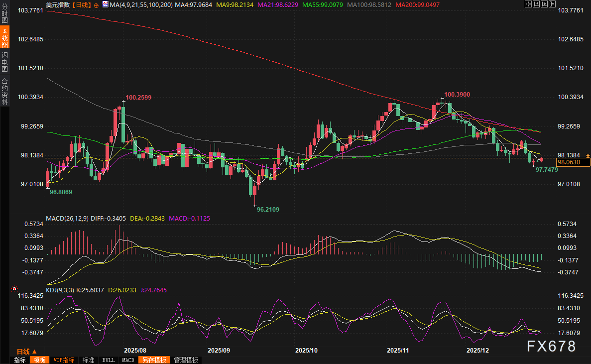 2025年即将画上句号,而美国美元指数(DXY)却以一种戏剧性的方式收尾。截至2025年12月26日,美元指数徘徊在98点附近,全年累计下跌约9.3%至9.7%,这不仅是自2017年以来最严重的年度跌幅,甚至可能接近2003年以来的最大年度损失。这种大幅下滑并非突发事件,而是多重因素交织的结果,包括美联储的宽松预期、政策不确定性、地缘政治紧张以及其他央行政策的分化。它不仅重塑了全球货币格局,还为2026年的投资景观带来了深刻变革。
