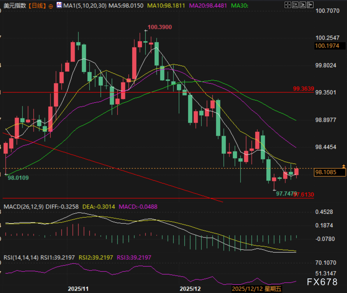 在此背景下,美元作为核心避险货币,吸引避险资金阶段性流入,为美元指数提供短期支撑,部分抵消了长期降息预期带来的下行压力,也使得98.00关口的震荡格局得以延续。