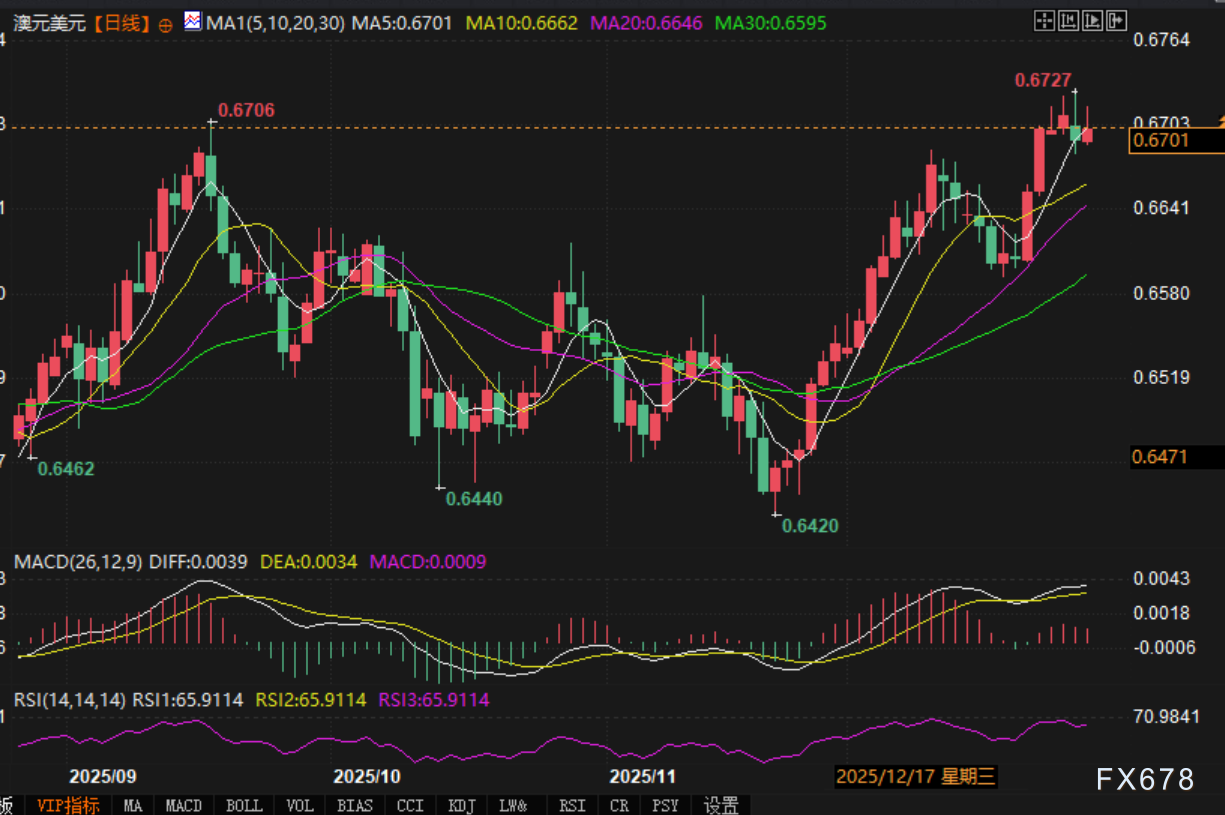 而澳元的上涨逻辑中,新兴市场因素同样不可或缺。中国财政部计划扩大对先进制造业、科技创新、人力资本开发等重点领域的定向投资,此前召开的年终会议已明确明年财政政策发力方向。考虑到澳大利亚与中国的紧密贸易联动性,中国经济复苏节奏的变动将直接传导至澳元汇率波动,为澳元提供潜在的上行推力
