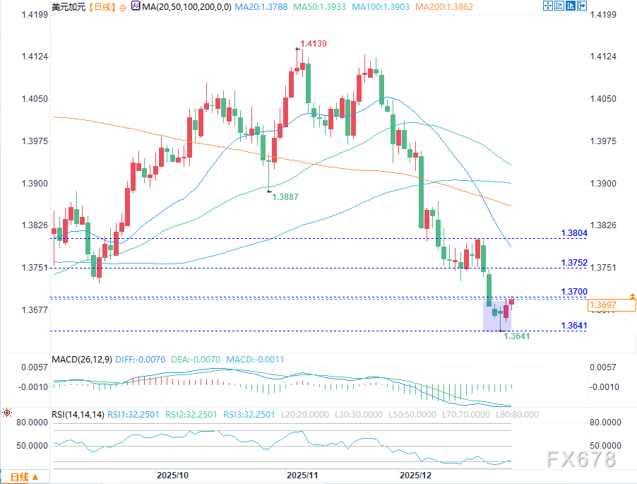 美元/加元汇率在1.3600关口上方止跌企稳,跌势放缓。昨日该货币对日线图形成看涨吞没形态,若形态确认有效,将支撑汇率反弹至1.3700-1.3750区间。若未来数个交易日汇率未能突破1.3700阻力位,则可能再度下探近期低点1.3640附近。