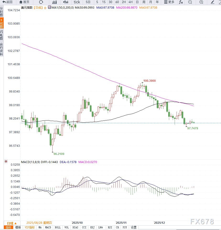 周二亚洲交易时段,美元指数(DXY)保持相对稳定,交投于98.00附近。市场在等待美联储12月政策会议纪要之前,整体交易谨慎,投资者希望从纪要中获得2026年政策路径的最新线索。